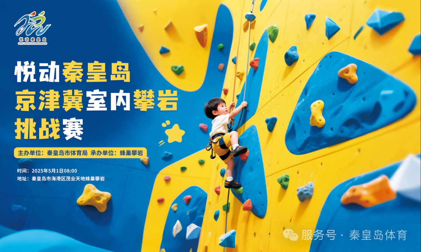 为深化赛事经济发展,促进体文旅深度融合,推动攀岩运动等新兴项目发展,“悦动秦皇岛”京津冀室内攀岩挑战赛定于2025年5月1日8:00-12:00在秦皇岛市新茂业天地一楼蜂巢攀岩举办,赛事由秦皇岛市体育局指导,秦皇岛市蜂巢攀岩承办。比赛项目有攀岩难度赛攀岩速度赛,设U7至U11组年龄组别。