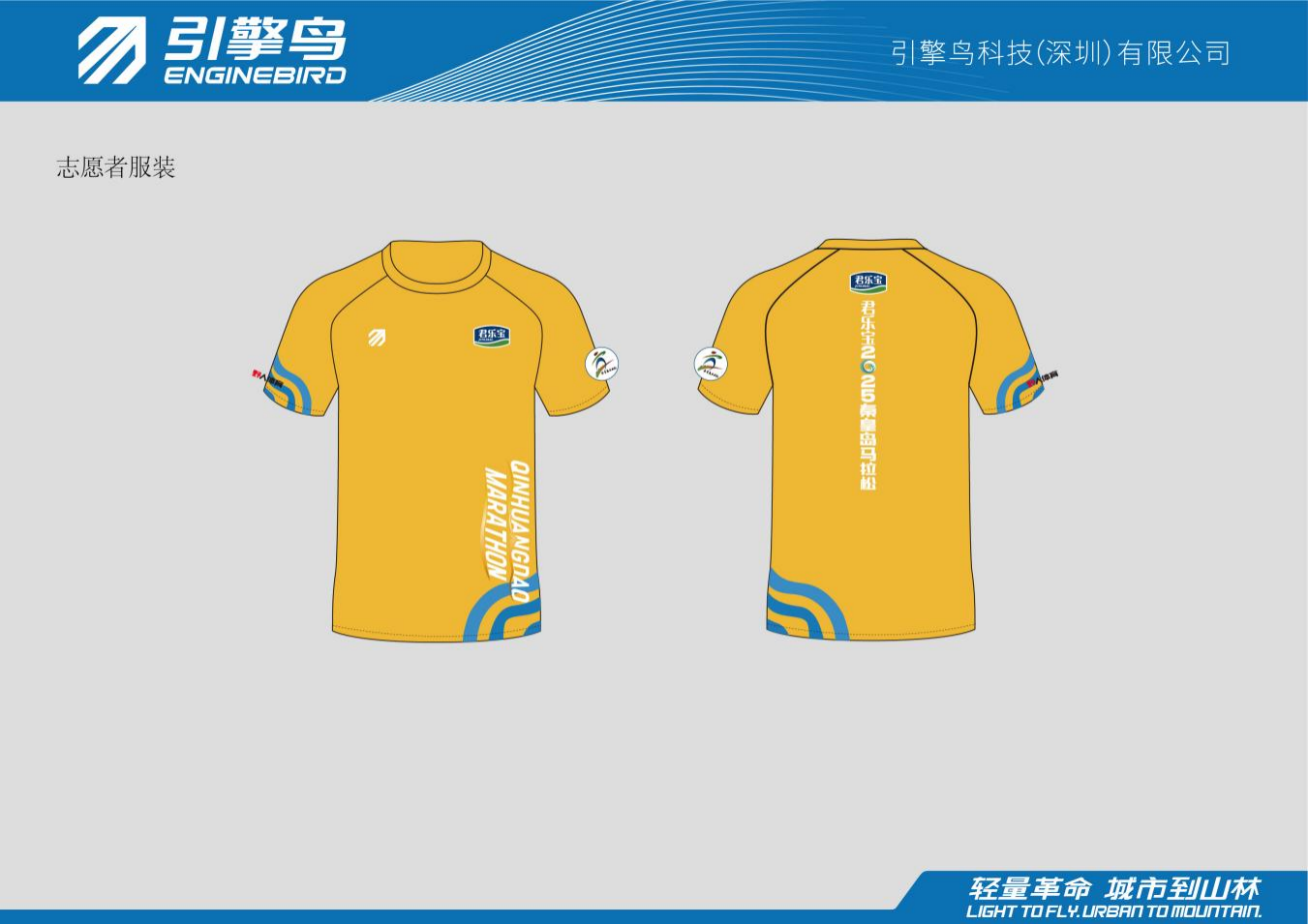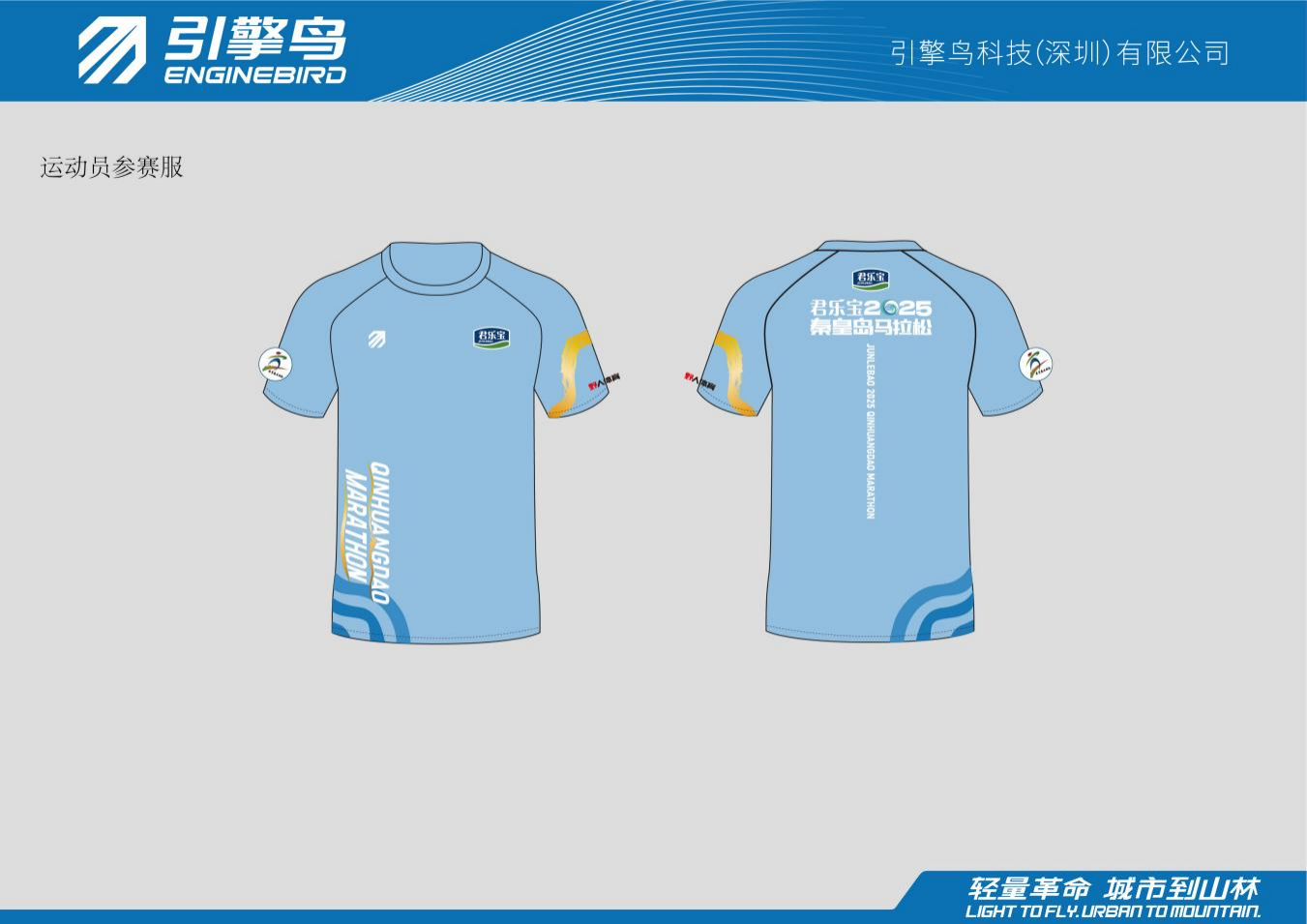 以秦皇岛海岸线为叙事核心,将海浪动态美学与城市禀赋深度融合。深浅交叠的波浪底纹象征跑者与赛道的起伏共振,飞墨质感的明黄海岸线勾勒出赛道地标,兼具地理标识与艺术张力,实现视觉语言与海洋元素的有机统一,诠释“人与海共生共进”的赛事哲学。