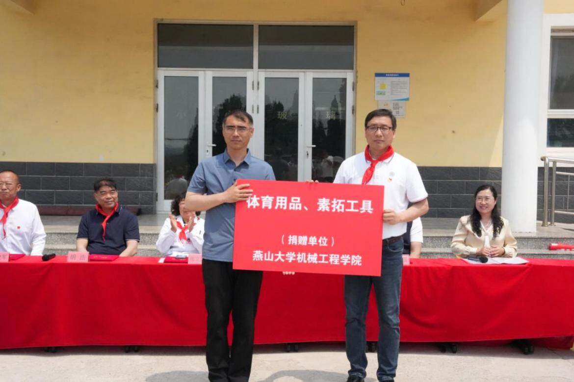 随后,支部共建仪式在该校舞蹈社活力满满的啦啦操表演中拉开序幕。机械工程学院机械电子工程系研究生第二党支部书记郝海滨在发言中表示,燕山大学机械工程学院将以此次活动为起点,充分发挥高校学科建设和人才资源优势,与各联建单位在党建协同、教育帮扶、人才培养等领域深化合作,通过创新共建机制、丰富活动载体,构建资源共享、优势互补、协同发展的党建工作新格局,为基层党组织建设和地方教育事业发展注入新动能。郝海滨代表机械工程学院向下平山小学捐赠体育用品及素质拓展工具,助力学校文体教育和综合素质培养。