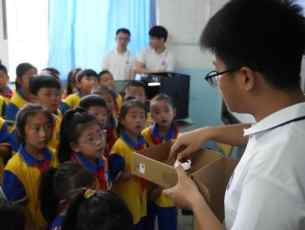 郝海滨代表机械工程学院向下平山小学捐赠体育用品及素质拓展工具。