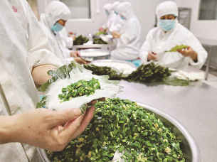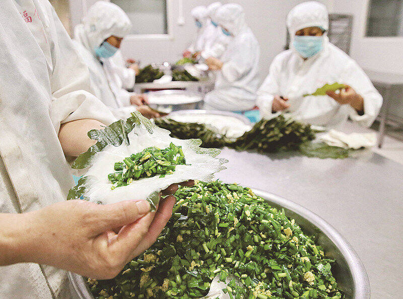 制作中的桲椤叶饼。记者 张伟 摄