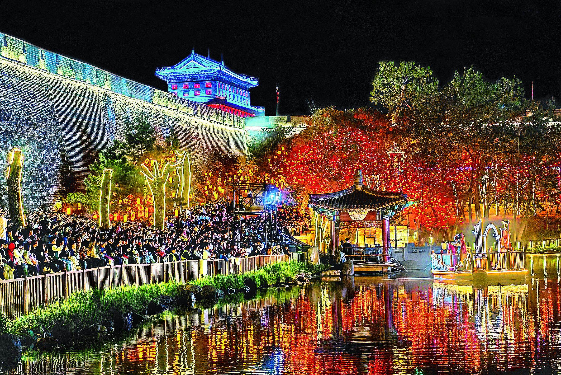 游客在山海关古城景区观看演出。记者 李铎 摄